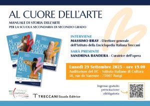 In presenza di Massimo Bray, direttore generale dell’Istituto della Enciclopedia italiana Treccani, e Sandrina Bandera, curatrice dell’opera. Incontro moderato da Antonio Calbi, direttore dell’Istituto Italiano di Cultura di Parigi Serata in collaborazione con Treccani Scuola Editrice Per iscriversi, cliccare qui Al Cuore dell’arte è un manuale di Storia dell’arte in tre volumi per l’ultimo triennio […]