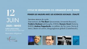 L’Istituto Italiano di Cultura di Parigi è lieto di annunciare l’ultimo appuntamento del ciclo di seminari realizzato in collaborazione con l’EHESS. Questo incontro rappresenta l’occasione per un confronto interdisciplinare su temi di attualità e di grande rilevanza, grazie alla partecipazione di studiosi e ricercatori di fama internazionale. Interverranno: Tito Boeri (economista, Università Bocconi) Frédéric Brahami […]